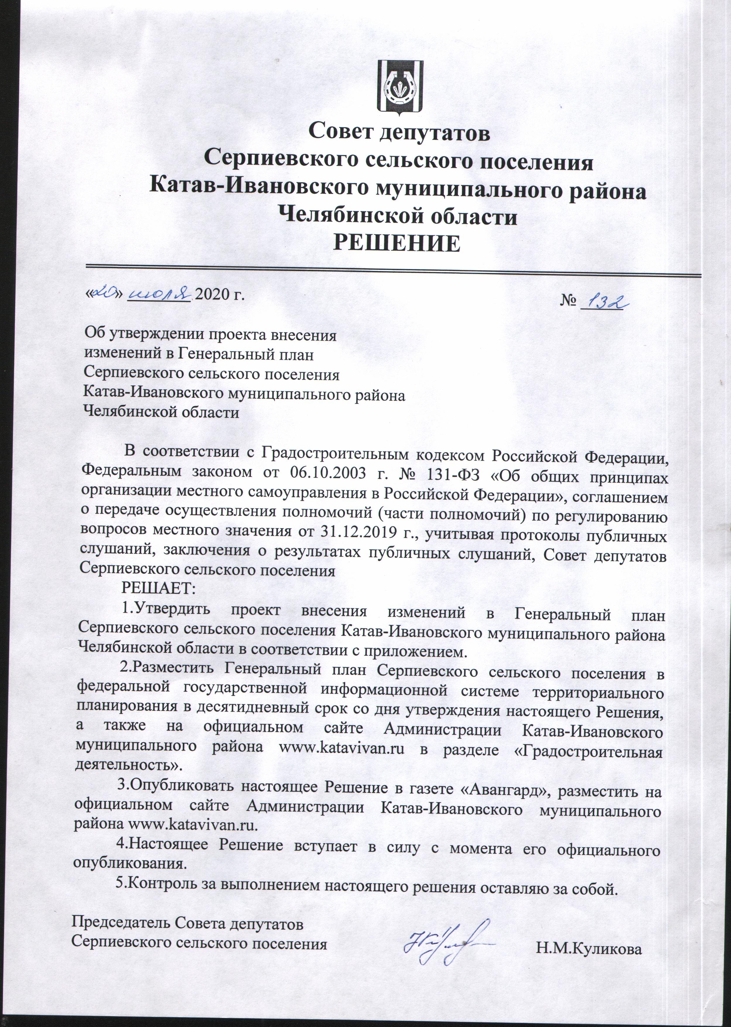 Решение №132 от 20.07.2020г.Об утверждении проекта внесения изменения в Генеральный план Серпиевского сп (1.14 МБ) | 1.14 МБ |