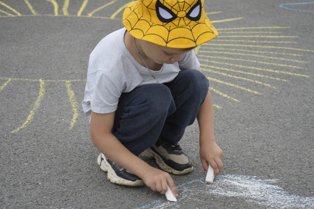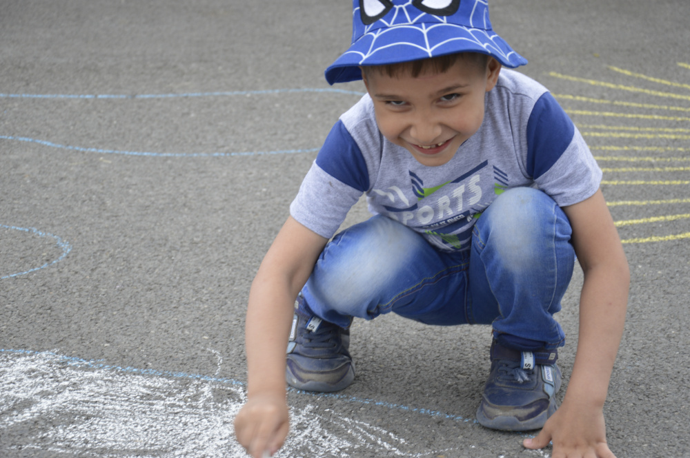 Малыши радуются жизни – прыгают на батуте, едят сладкую вату, рисуют мелками самые лучшие рисунки, которые могут прийти в голову только таким светлым и лучезарным созданиям.