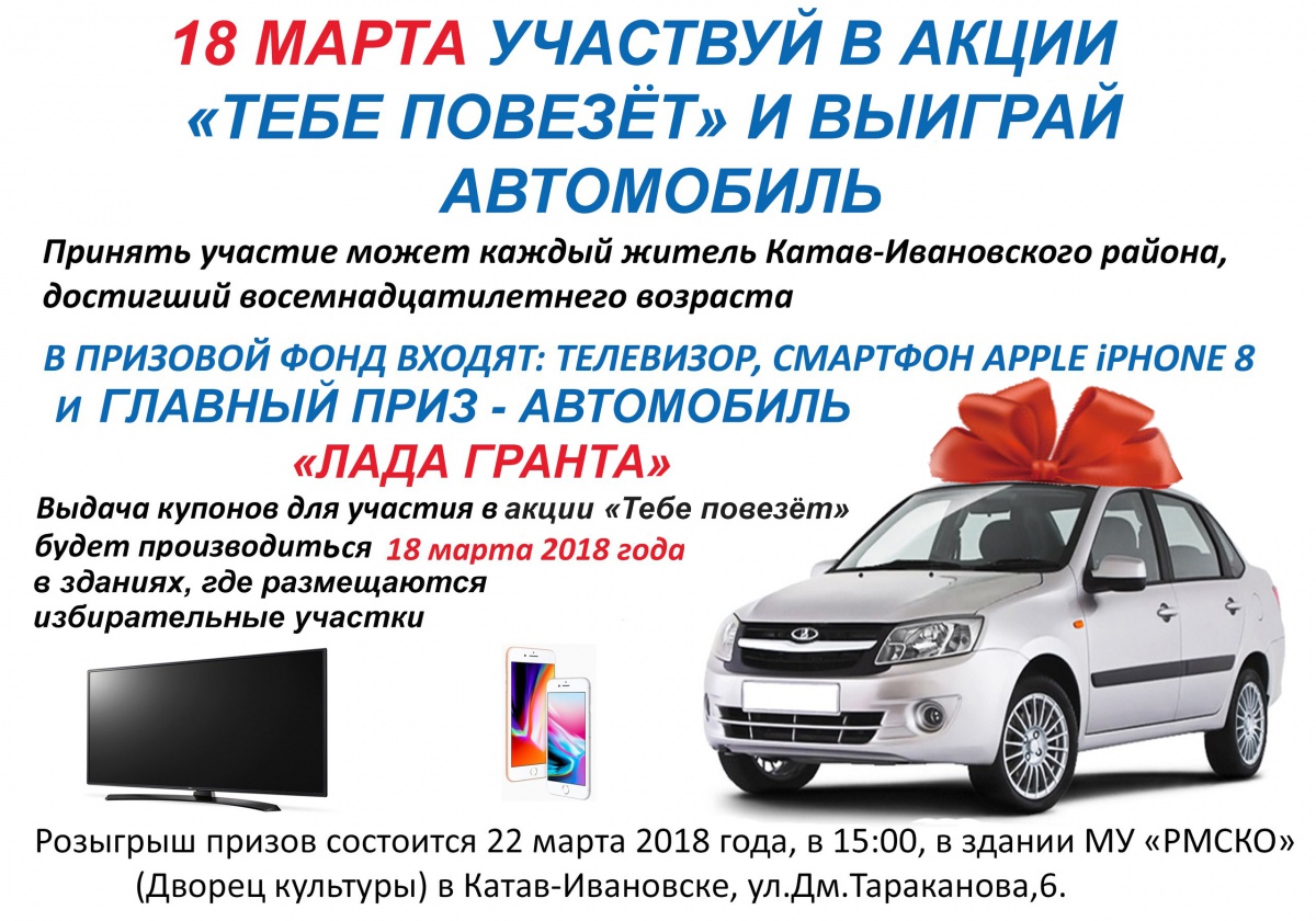 18 марта участвуй в акции "ТЕБЕ ПОВЕЗЁТ" и выиграй АВТОМОБИЛЬ