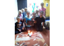 Воспитатели совместно с детьми зажгли свечи и исполняли песни из книги, которую сделали сами. Вся эта работа велась по проекту «Поклонимся Великим тем годам!».