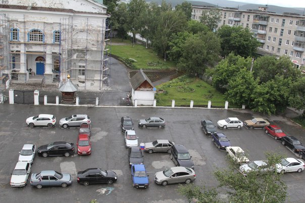 Молодые автомобилисты выстроили из своих машин гигантскую цифру 260 в центре Катав-Ивановска, на площади возле храма.