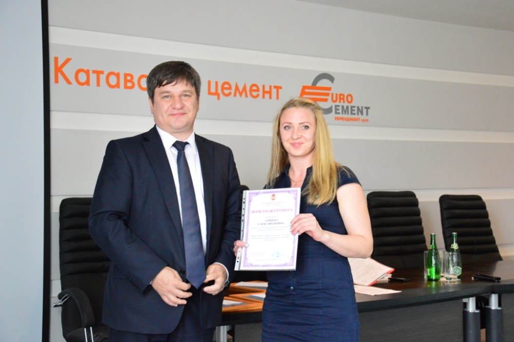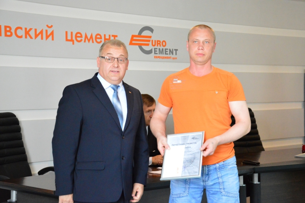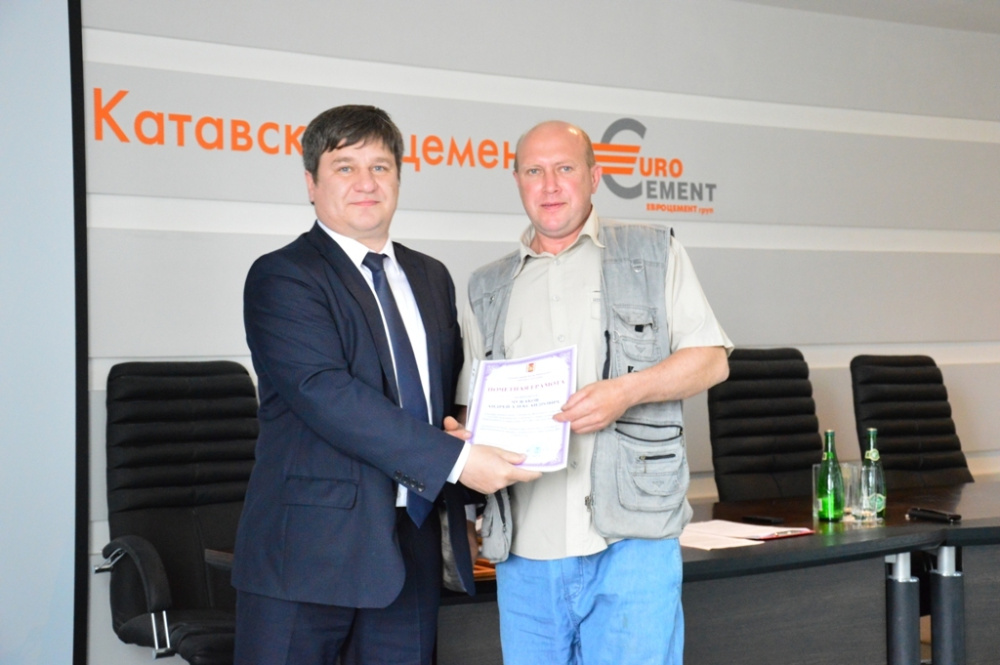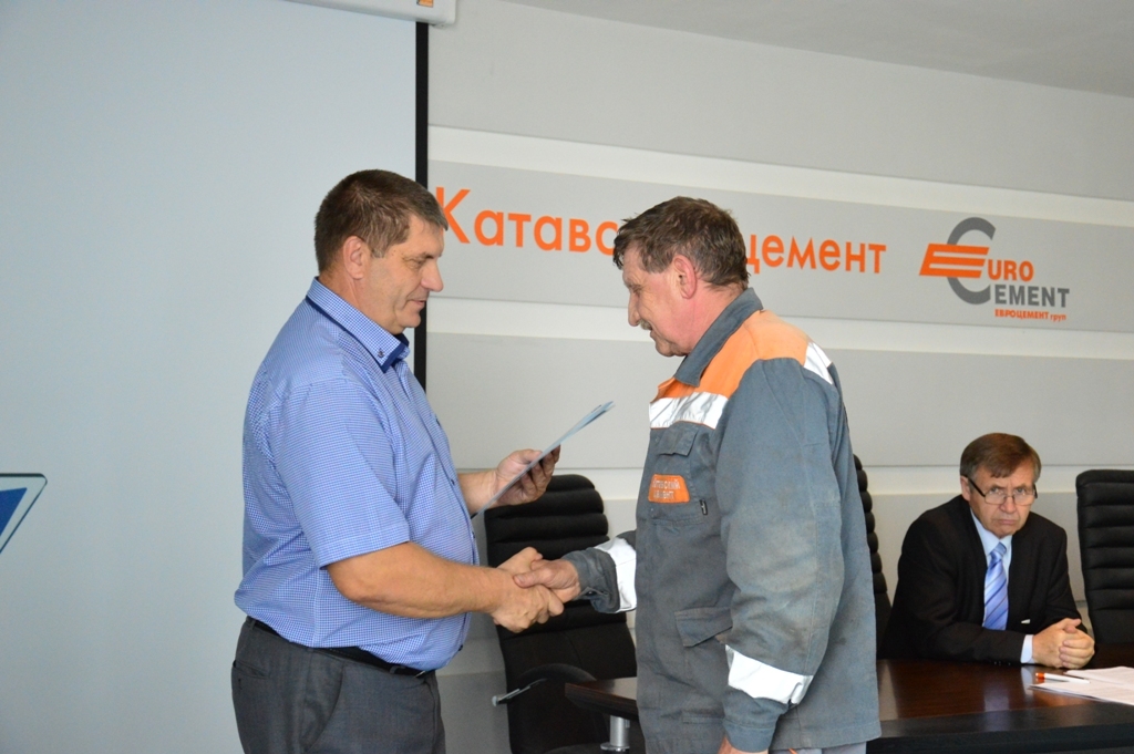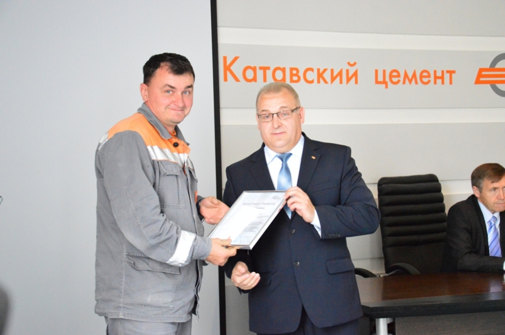 Почетные грамоты главы Катав-Ивановского района вручены Дмитрию Тешину, электромонтеру по ремонту и обслуживанию электрооборудования, Светлане Гончарук, лаборанту производства строительных материалов, благодарности – Владимиру Челнокову, насыпщику цемента, Геннадию Меркулову, слесарю-ремонтнику.