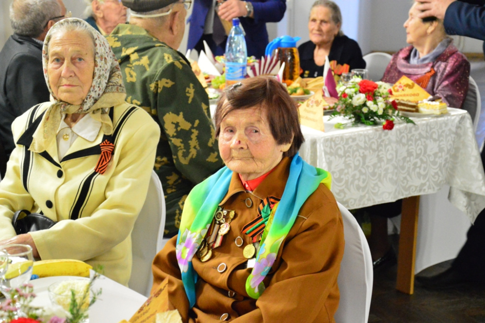 Во Дворце культуры собрались участники ВОВ и труженики тыла. Для них была подготовлена праздничная программа. Гости окунулись в атмосферу тех лет, пели песни, танцевали и вспоминали о годах войны.
