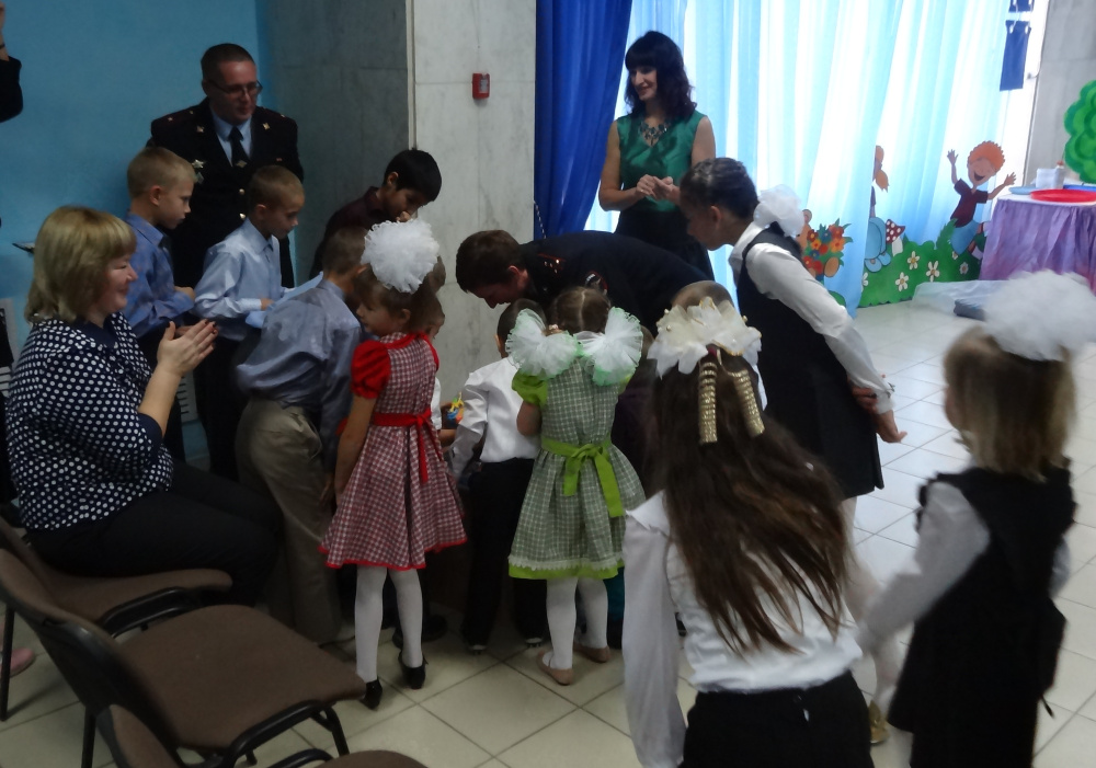 Затем к собравшимся обратились гости из Трёхгорного: Андрей Лопаков, временно исполняющий обязанности начальника Межмуниципального отдела МВД России по ЗАТО, майор полиции, и Елена Дудакова, помощник начальника отдела – начальник отделения по работе с личным составом, капитан внутренней службы. На протяжении многих лет соседи отзываются на все просьбы администрации учреждения, готовы выехать на помощь и днём, и ночью. С социально-реабилитационным центром у них сложилась давняя дружба, и шефство полицейских из соседнего города выражается далеко не формально. В этот раз Андрей и Елена привезли детям много полезных игровых вещей. И когда пригласили посмотреть, что же там, в коробках, дети, как горох, посыпались им навстречу и обступили плотным кольцом. Удовлетворив любопытство, они расселись по местам и хором благодарили сотрудников полиции.