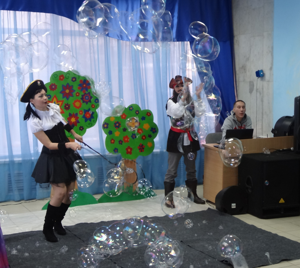 А затем детей ждал настоящий сюрприз от коллектива Дворца культуры ЮРЭС из Юрюзани. Когда Юлия Юрьевна Волкова обратилась к Марии Ким, руководителю проекта «Шоу мыльных пузырей», и предложила выступить на день рождения социально-реабилитационного центра, Мария Петровна, даже не глядя в свой рабочий график, ответила утвердительно: «Обязательно! И приедем мы с Джеком Воробьём!» Своё слово альтруистические артисты сдержали. Благотворительное шоу подарило детям столько положительных эмоций, столько впечатлений, ведь они сами стали участниками этого волшебного действа в океане радости, на корабле надежды.