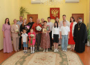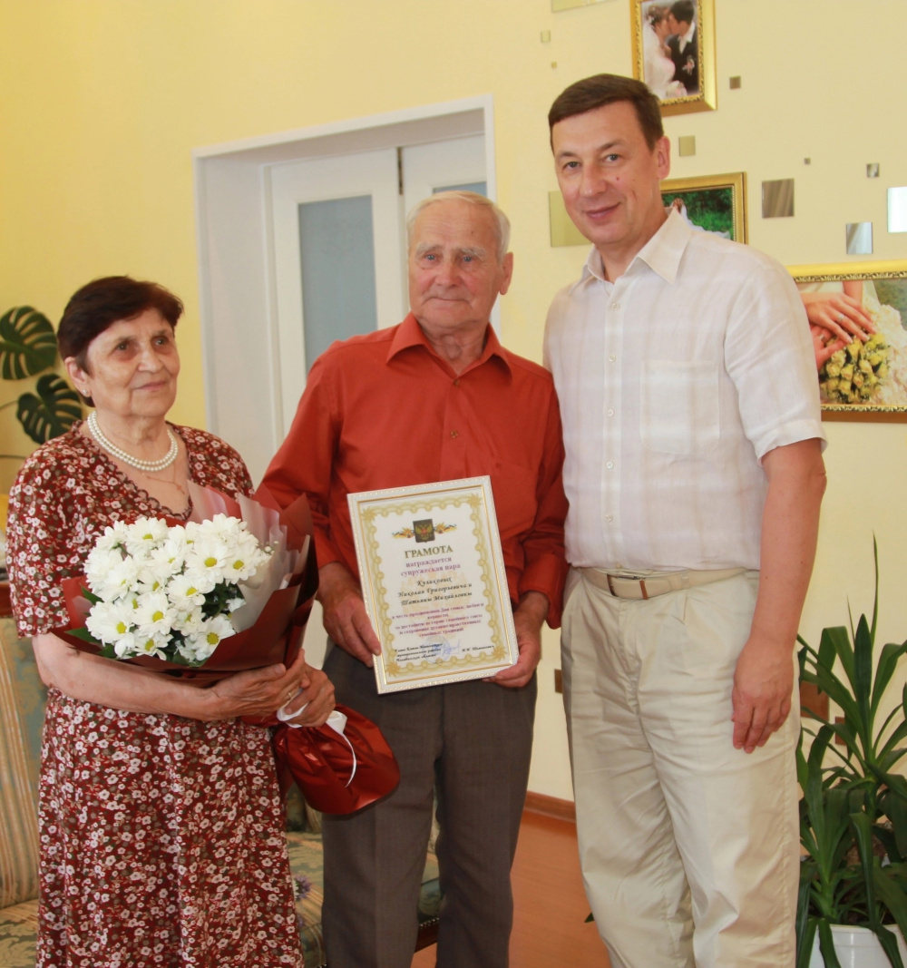 Глава района, Шиманович Николай Иванович, тепло поздравил супругов со значимым и важным семейным юбилеем, в этом году семья отметила «Изумрудную свадьбу» - 55 лет супружеской жизни, а также поблагодарил за достойную историю семейного союза и сохранение духовно-нравственных семейных ценностей. Начальник отдела ЗАГС Маслова Наталья Александровна передала супругам памятный подарок от ВПП «Единая Россия». Настоятель храма Иоанна предтечи отец Александр, поздравил супругов и подарил семейную икону Святых Петра и Февроньи, ведь именно они считаются покровителями этого праздника.