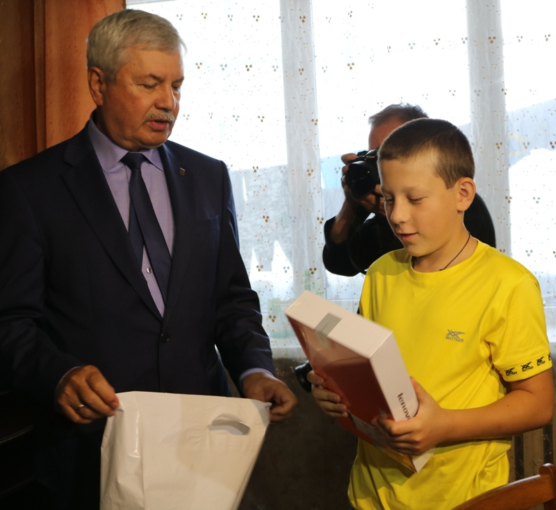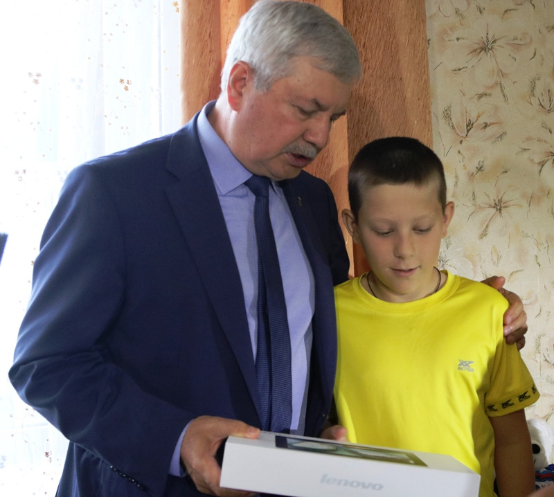 Сегодня депутаты также приехали к детям не с пустыми руками. Старшему сыну Ивану, который перешел в седьмой класс, подарили долгожданный планшет. «Я давно об этом мечтал. В школе нам часто задают делать различные проекты. Мне приходилось писать их от руки. А теперь я многое смогу», - радуется Ваня. Мальчик также увлекается хоккеем, играет за местную команду «Дубровка». В копилке у юного спортсмена уже золотая и серебряная медали за победу на областных соревнованиях. Теперь Иван мечтает о хоккейной форме. Депутаты пообещали подарить ее ребенку к новому сезону. Кстати, хоккейную коробку в поселении в прошлом году построили единороссы в рамках проекта Партии «Строительство хоккейных кортов».