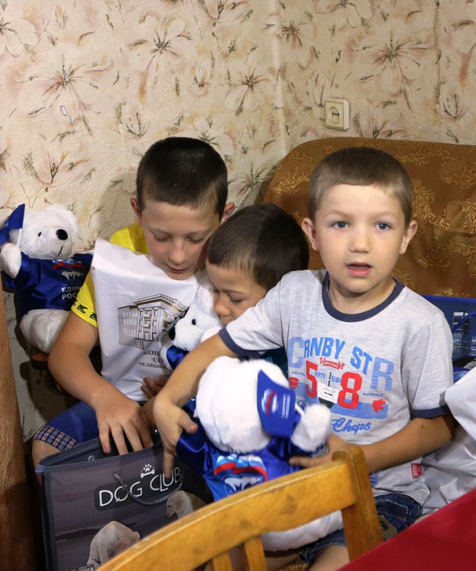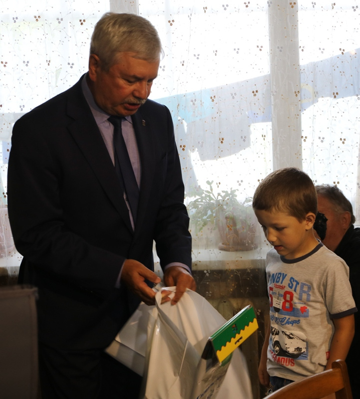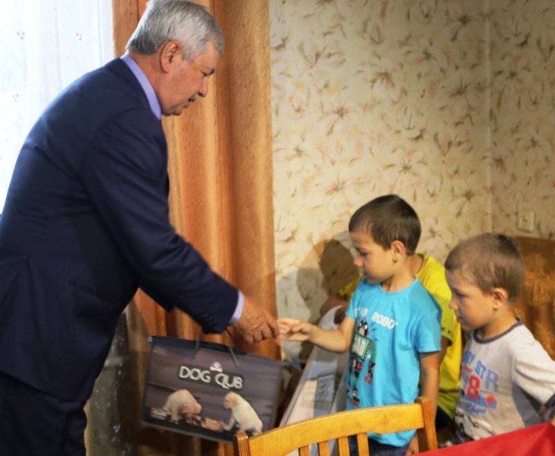 Младшие дети – Артем и Арсений – еще ходят в детский сад. Им депутаты вручили книги, игрушки, раскраски и развивающие игры. Затем вся семья с гостями собралась на чаепитие.