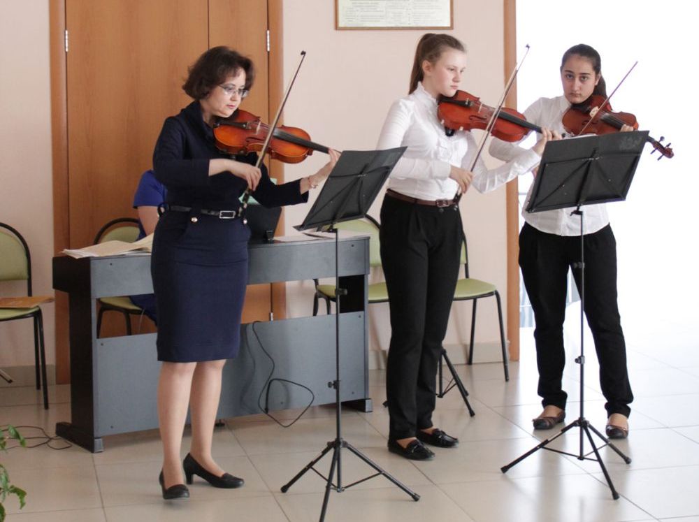 Скрипачи вместе со своим наставником Галиной Хисамовой давно полюбились зрителям. Их выступление на открытии областного этапа конкурса «Учитель года» привело в восторг конкурсантов со всей Челябинской области.