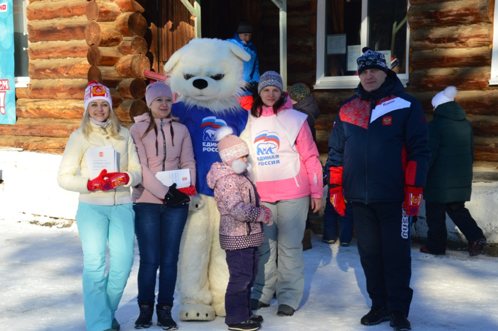Одной строкой замечу, что детей отлично развлекал на лыжне партийный мишка: аниматора в этот раз нашли всем на зависть, - подвижного, мобильного, контактного, - малышня в него просто влюбилась и не было отбоя от игры в догонялки. Спасибо учащемуся второго курса Индустриального техникума Никите Подгорняку, - молодец!