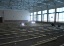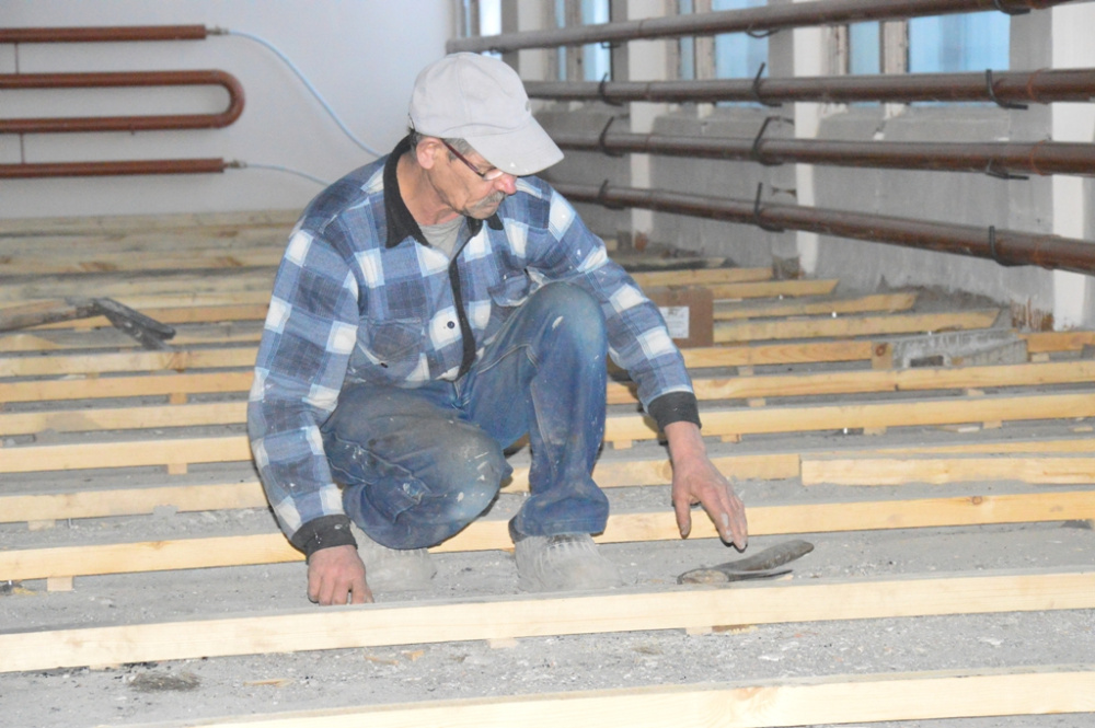 На сэкономленные средства с аукционов по ремонту витража и кресел удалось приступить к ремонту спортивного зала на третьем этаже (помещение № 37). Здесь необходим был капитальный ремонт. Демонтировали потолок, отшпатлевали и покрасили стены, сейчас монтируется пол из бруса по специальной технологии для таких помещений, чтобы не «гуляла» доска. Ремонт выльется более чем в 700 тысяч рублей. 16 светодиодных фонарей будут освещать спортивный зал. Это помещение планируется использовать для проведения игр разных уровней, в том числе областных, по мини-футболу, баскетболу и волейболу. По окончанию ремонта уже запланирована одна из них.