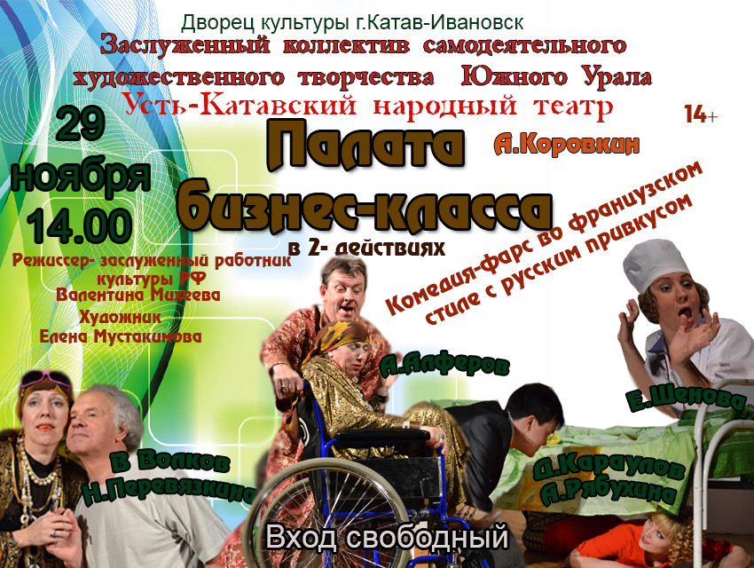 Приглашаем Вас 29 ноября 2014 г., в 14-00, во Дворец культуры Цементников на спектакль-комедию «Палата бизнес-класса», приуроченный к празднованию Дня рождения Всероссийской политической партии «Единая Россия». Вход свободный.