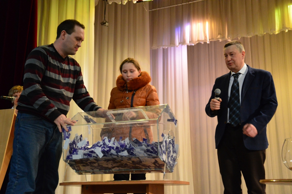 Процедура розыгрыша прошла максимально открыто и честно. Дети из зрительного зала выбирали ряд и место человека, который крутил барабан, им должен был быть мужчина, если же на этом месте сидела женщина или ребенок, то вызывался ближайший мужчина справа. И ряд и место человека, который из барабана вытягивал счастливые номерки, это должен был быть ребенок, если на выбранном месте сидел мужчина или женщина, то выходил рядом сидящий ребенок справа.