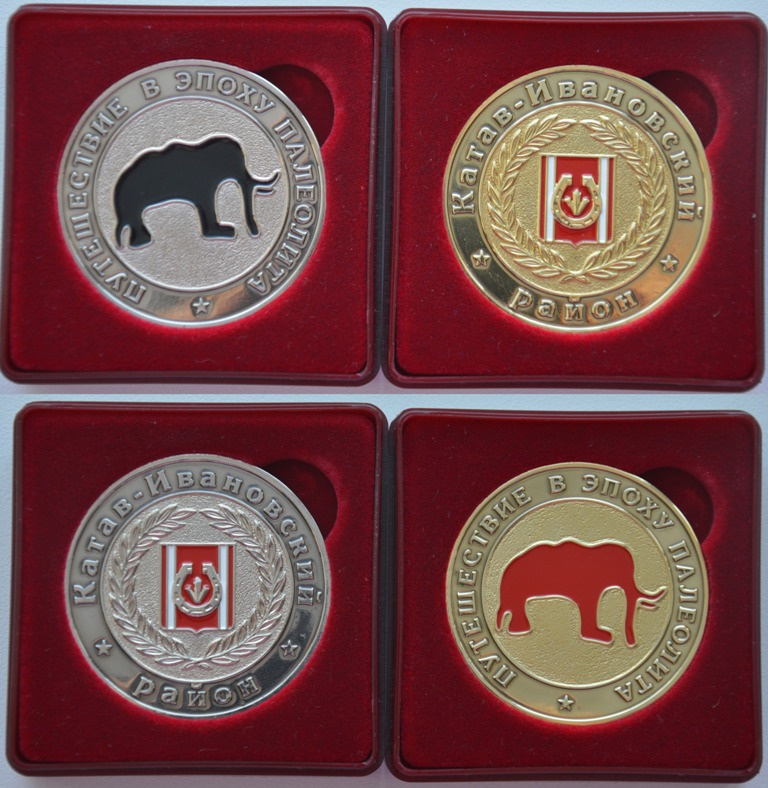 Золотые и серебряные монеты уже изготовлены. На лицевой стороне, в центре, изображен рельефный герб Катав-Ивановского района, символизирующий промышленность района и две реки - Юрюзань и Катав, закованных заводскими плотинами. Окантовывает герб две пальмовые ветви. По окружности расположена выпуклая надпись - Катав-Ивановский район. На другой стороне размещен туристический символ Катав-Ивановского района – «Мамонтёнок», стилизованный рисунок мамонта, скопированный с наскального рисунка древнего человека из Игнатьевской пещеры. По окружности надпись - путешествие в эпоху палеолита.