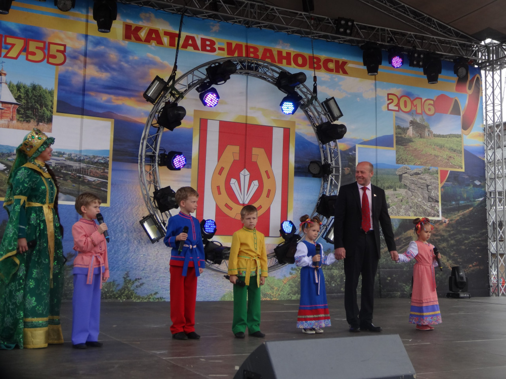 Поздравить земляков приехал депутат Государственной Думы Федерального Собрания Российской Федерации Олег Колесников, по поручению председателя Собрания депутатов региона Владимира Мякуша – Александр Решетников. С поздравительными речами к горожанам обратились главы муниципалитета и города Евгений Киршин и Алексей Бисярин. Звание «Почётный гражданин Катав-Ивановского района» присвоено известной общественнице территории Алевтине Ивановне Мясоедовой, знак и удостоверение на праздничной сцене ей вручил председатель Собрания депутатов района Николай Рудаков.
