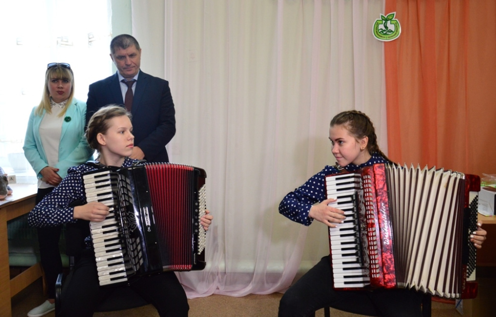 Свой концертный номер для собравшихся на церемонию подготовили воспитанницы педагога Елены Подшиваловой – Арина Криушова и Алла Комаровская, они сыграли на аккордеонах две композиции: «Я возвращаю ваш портрет», «Либертанго». Мощный заряд энергии отправили в зал девочки, и это было кстати, потому как сразу после их художественного исполнения наступил кульминационный момент торжества.