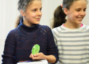 Пока дошла очередь до вручения Гран-при муниципального конкурса «Катав-Ивановск – зелёная планета», я обратила внимание на Полину Хлыбову, это же её ждали планшет последней модели одной из известных фирм и хрустальный глобус с логотипом. Сразу замечу, что сёстры Хлыбовы – тройняшки, так вот две сестры уже подарки получили, а Полина – пока ничего. И она предположила, что все награды уже вручены, опустила голову. «Полина – вы же абсолютный победитель! Идите за подарками!» - выдержав небольшую паузу, объявил Олег Алексеевич. Здесь надо было видеть лицо девочки: сначала удивление, потом – радость, причём такая неподдельная! «Я, правда, не ожидала, что получу такой дорогой планшет! Это чудо!» - только и смогла произнести Полина. Поддержать её пригласили родных сестричек и Татьяну Типтюк, которая сочинила четверостишие к рисунку подруги. Это обладательнице Гран-при пришла идея – закрыть на замок дым от заводов, именно этот сюжет она и отобразила в своей великолепной работе.