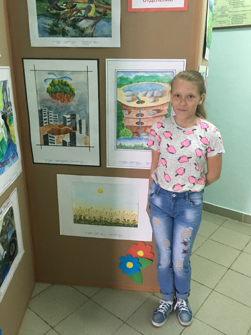 Сразу надо отметить, что задание по теме было далеко не из лёгких. Юным художникам предстояло отразить не только красоту и самобытность нашей природы, но и поднять серьёзные экологические проблемы. И наши дети высказали в рисунках столь глубокие и креативные мысли, - есть надежда, что они будут лучше нас и сберегут зелёную планету, будут заботиться об экологии и о здоровье потомков. А к глубокой по смыслу работе Полины Хлыбовой Татьяна Типтюк даже сочинила такие строки: