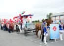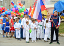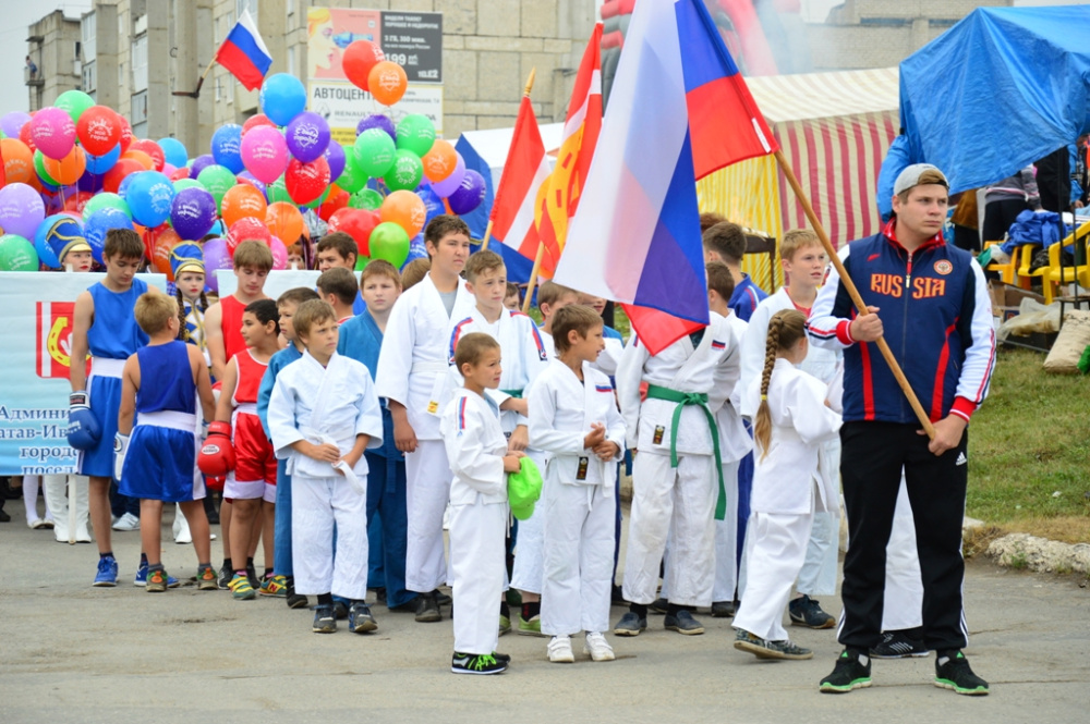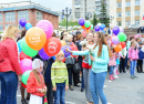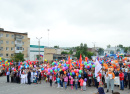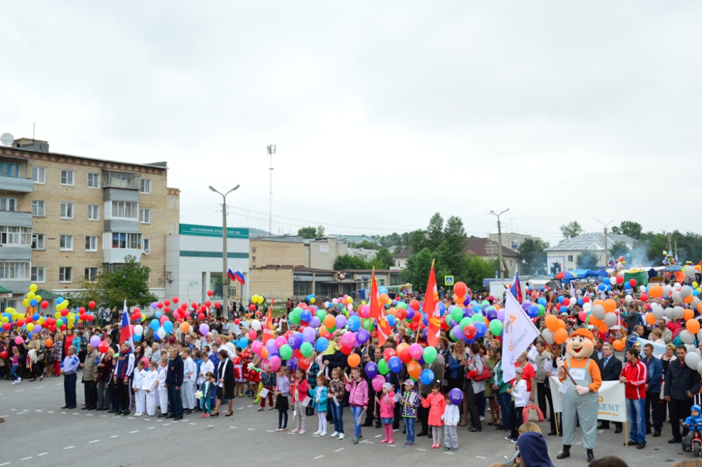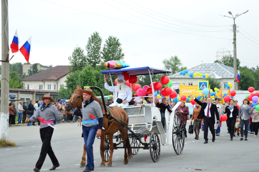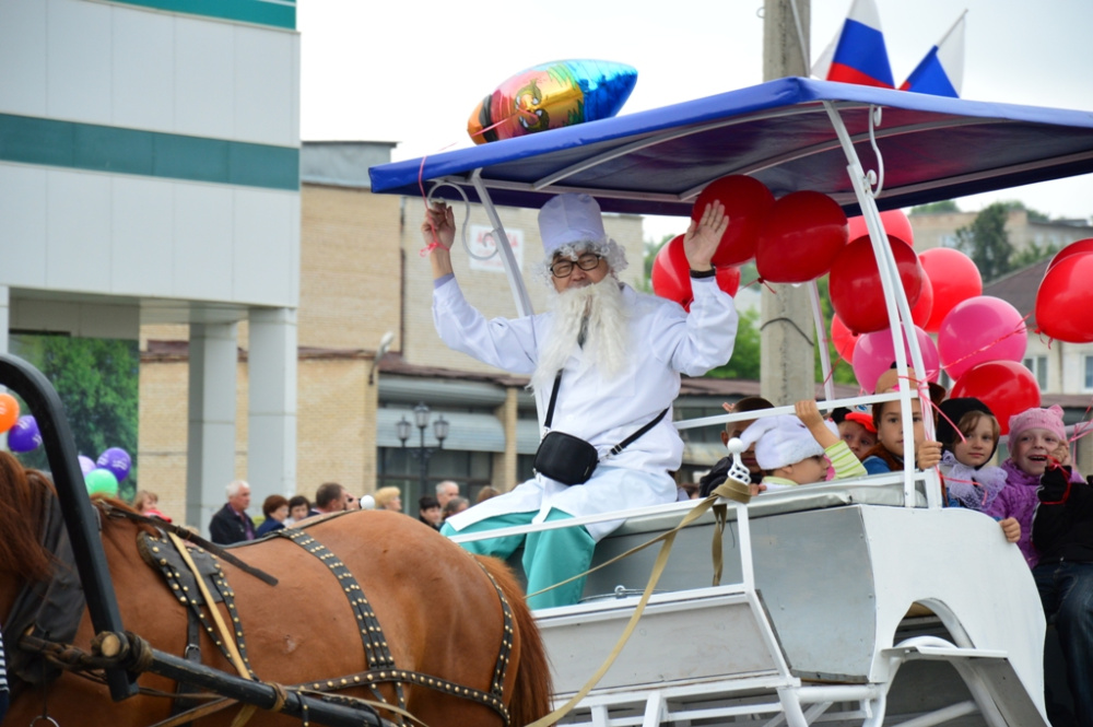 С самого утра на центральной площади города проходили праздничные мероприятия. Открыли праздник шествием колонн трудовых коллективов. В этом году шествие было тематическим, посвященное году российского кино. Самыми оригинальными были коллективы центральной районной больницы, Центра помощи детям, оставшимся без попечения родителей и социально-реабилитационного центра для несовершеннолетних.