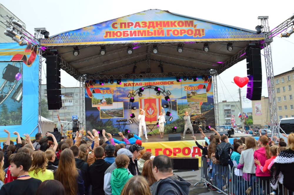 Вечером жителей и гостей Катав-Ивановска порадовал праздничный концерт. Свои хиты исполнила знаменитая группа «Комиссар» из Москвы. Также сцене выступили участник проекта «Голос 4» на первом канале Артем Каторгин, участник проекта «Голос дети» Евгений Гапонов, музыкальные группы «Изюм», «ИнКэш» и «Профилактика» из Екатеринбурга и Челябинска. На вечернем празднике также присутствовал депутат Государственной Думы РФ Олег Колесников. С приветственным словом он обратился к собравшимся.