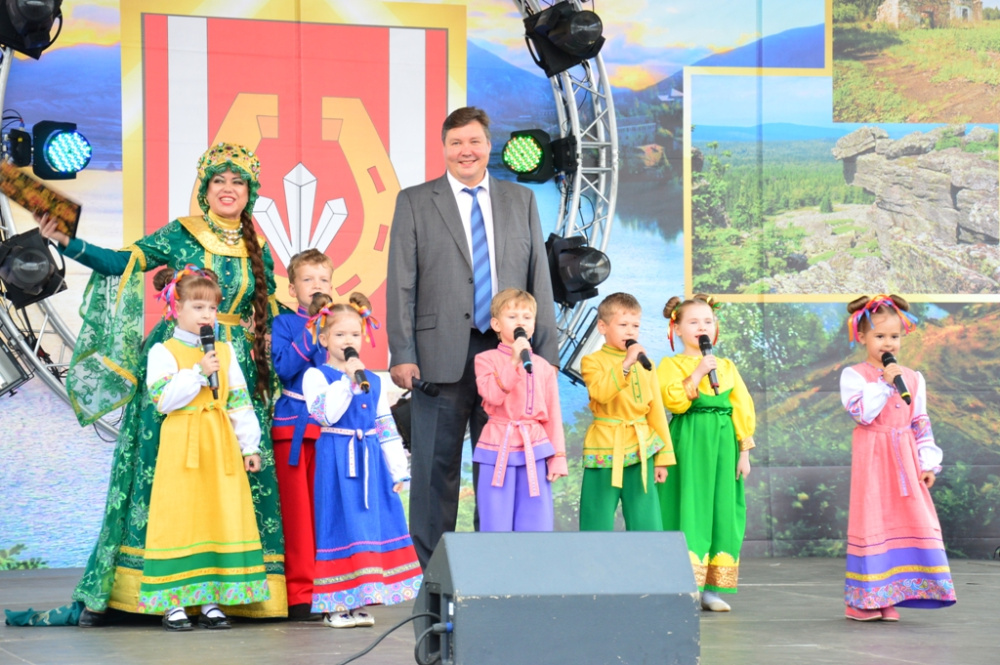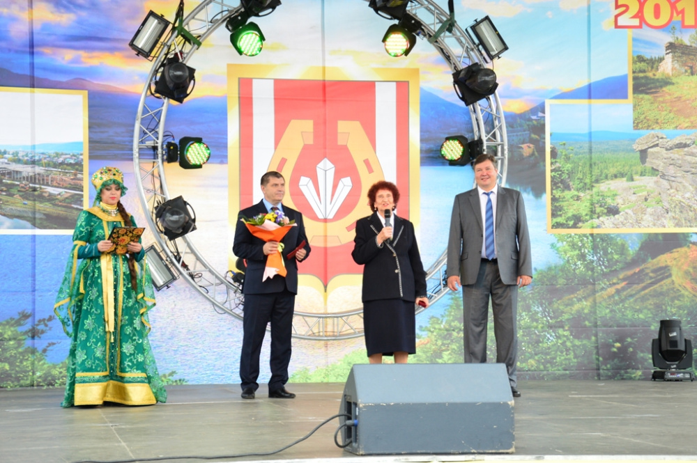 Со сцены жителей Катав-Ивановска и гостей города приветствовала хозяйка медной горы. Она вместе с маленькими артистами театральной студии миниатюр «Саквояж» приглашала для поздравления главу Катав-Ивановска Алексея Бисярина, главу Катав-Ивановского района Евгения Киршина, Председателя Собрания депутатов района Николая Рудакова, депутата Государственной Думы Российской Федерации Олега Колесникова, депутата Законодательного Собрания Челябинской области Александра Решетникова.