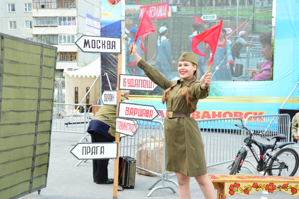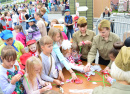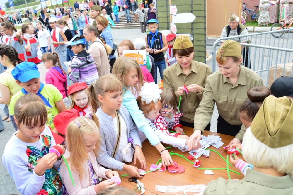 Чреда поздравлений продолжилась выступлением детского духового оркестра и хореографический коллектив «Ангажемент». Возле сцены была организована интерактивная площадка. Работники и воспитанники дворца культуры приглашали горожан на танец, а для детей была организована творческая зона, на которой они своими руками изготавливали гвоздики.