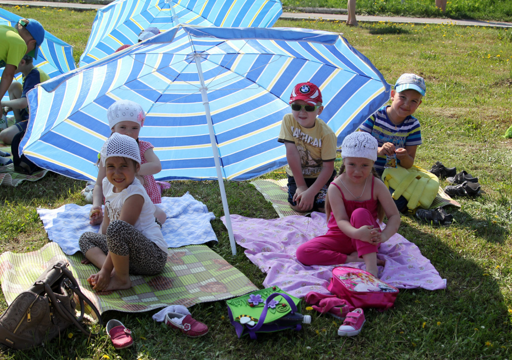 Началась праздничная программа в десять часов утра, у бывшего фонтана возле Центральной площади. Именно тут собрались несколько команд городских детских садов на спортивную программу «Веселая дорога к нормам ГТО».