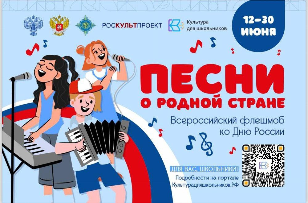 С 12 по 30 июня 2024 года в рамках межведомственного культурно-образовательного проекта «Культура для школьников» пройдет Всероссийский флешмоб «Песни о родной стране», направленный на патриотическое воспитание молодых людей, сообщают организаторы.