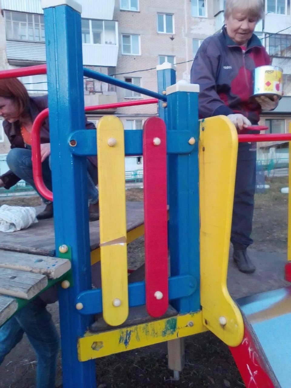 Горожане, депутаты и волонтёры провели субботники. На улице Красноармейской, д. 47 покрашены 12 скамеек; на ул. Разина, д. 18 - 6 лавочек, игровой комплекс, металлические формы для белья и выбивалка для ковров, на ул. Разина, д.20 – 10 лавочек, песочница, сиденья на карусельке, беседка с двумя скамейками. Краска осталась, горожане проведут повторное окрашивание.