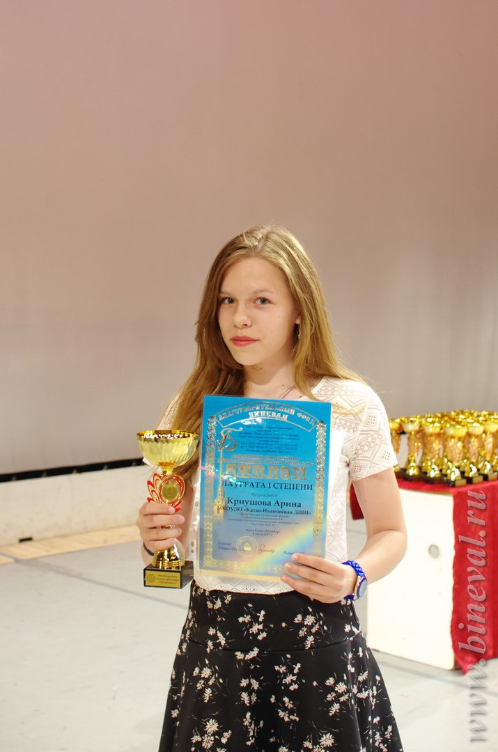 Своим уральским темпераментом, настойчивостью, целеустремленностью и мастерством Арина сумела удивить и покорить северную столицу, завоевав звание Лауреата I степени.