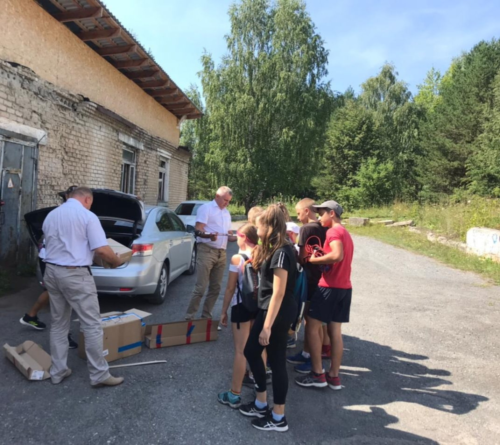 Вчера, местные власти вручили детям и руководителю лыжной секции Александру Тихоньчику лыжероллеры, крепления, лыжные ботинки.