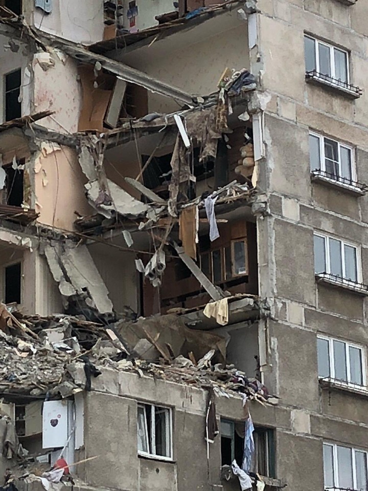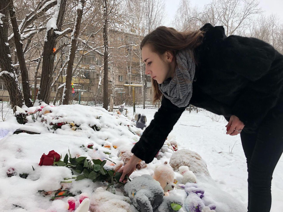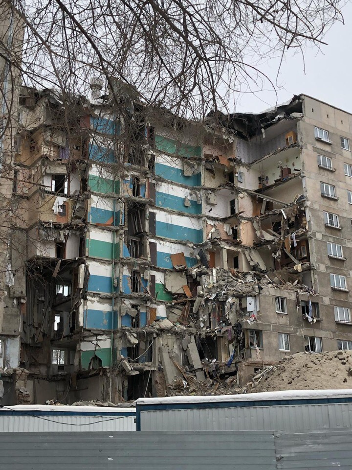 После встречи с Евгением Фокиным мы отправились на место трагедии и посетили стихийный мемориал у обрушившегося дома, для возложения цветов в память о погибших.