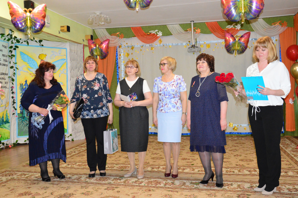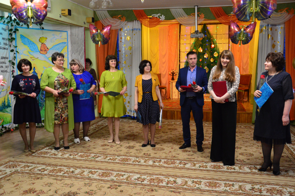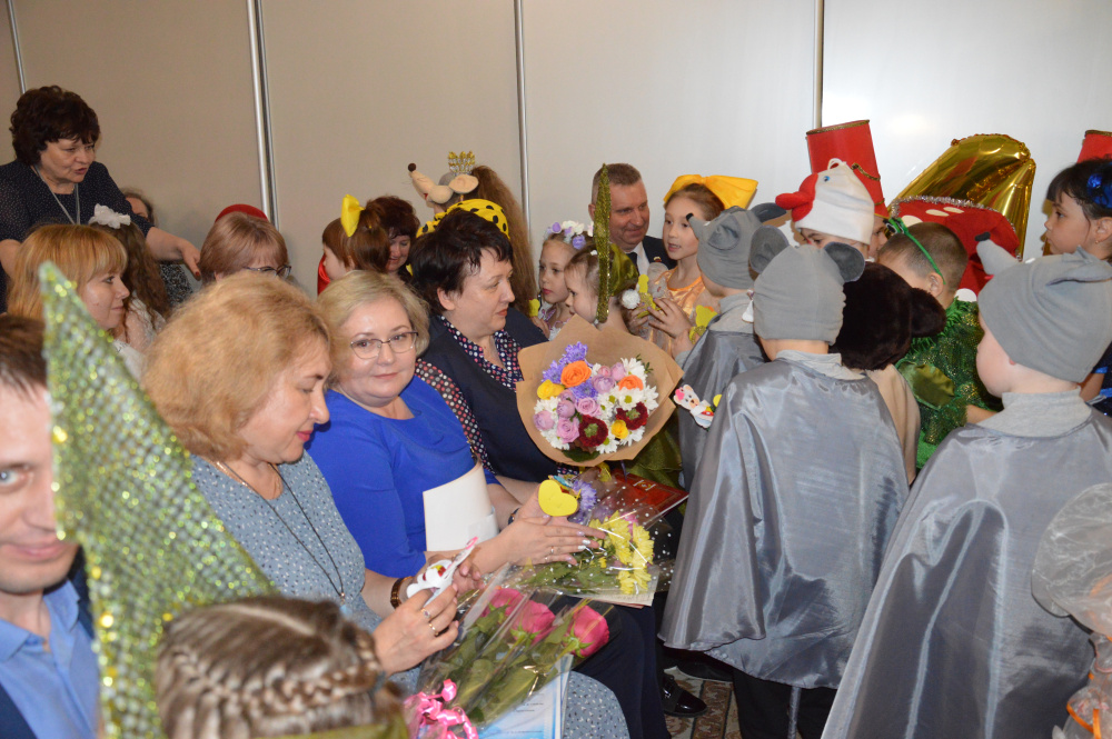 После поздравительных речей проходило торжественное награждение. Лучшим сотрудникам были вручены награды - почетные грамоты и благодарности от главы муниципалитета, собрания депутатов, министерства и управления образования, администрации Юрюзани и заведующей детсада. От главы района Николая Шимановича коллективу вручена почетная грамота номиналом 50 тысяч рублей на развитие материально-технической базы учреждения.