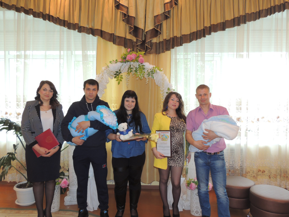 Мирно сопя носиками на руках родителей малыши ждали своей очереди, получить свой первый в жизни документ. Бирюкова Софья, Мальцев Кирилл, Зайцев Дмитрий и Чечушков Михаил получили свидетельство о рождении.