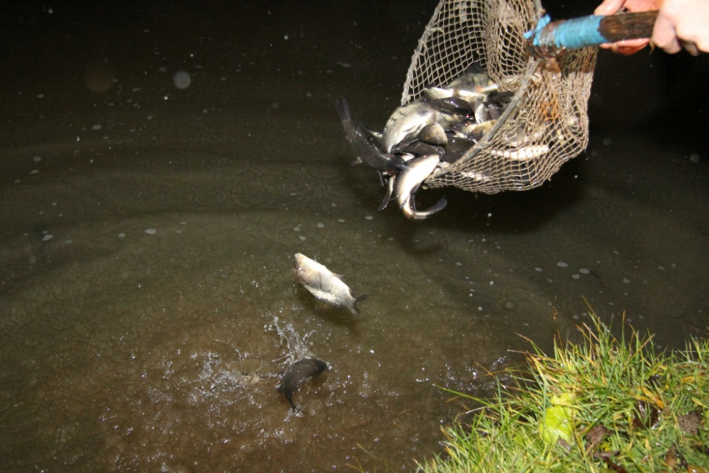 Само зарыбление пруда походило на настоящую спецоперацию. Так как дорога из Южноуральска неблизкая, то машина с мальками пришла в Катав-Ивановск ближе к полуночи. Дождь в этот день начал лить с обеда и не переставал всю ночь. В такую погоду хороший хозяин собаку не выпустит, а тут целая команда собралась.