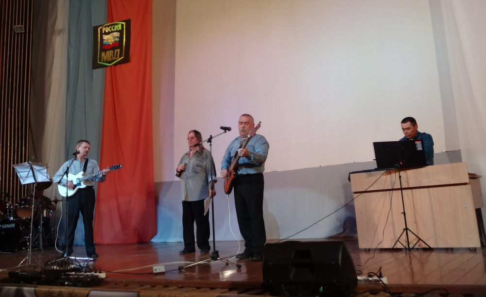 Открыл торжество председатель Совета ветеранов органов внутренних дел и внутренних войск Павел Ульянов. По реакции зала при его появлении можно понять, что этот человек является лидером в своём коллективе и пользуется заслуженным уважением. Павел Иванович искренне поздравил коллег, нашёл как раз те слова, которые как ключ открывают путь в душу каждого и тёплым эхом отражаются в аплодисментах. Далее ветеранов МВД приветствовал Вячеслав Дымов. А потом – талантливые актёры из детского сада «Колокольчик», они буквально украсили зал своим ярким появлением и подарили аудитории танец с российскими флагами. Очень душевно, с любовью, встречали зрители пятилетнего Игнатия Бисярина, воспитанника детского сада «Алёнушка». Стильный мальчуган является милицейским внуком, он эмоционально, с жестами, декламировал стих. В концертной программе, как всегда, блестал коллектив «Бумеранг». Приятным подарком для собравшихся были сольные песни в исполнении Елены Лазаревой. С волнением ждали ветераны МВД дебюта вокально-инструментального ансамбля, который создали несколько месяцев тому назад бывшие сотрудники милиции-полиции и их друзья. Руководит группой Вячеслав Шаров. Пока ансамбль исполнил пять песен, в ближайшем будущем планирует репетиции, подбор музыкантов и солистки-женщины. «Мы очень переживали за творческих друзей, за проект вообще, удастся ли он к празднику или не удастся, - рассуждает Павел Ульянов. – Поэтому перед входом в зал всем собравшимся говорили, чтобы не судили строго наших артистов, ведь у них и аппаратуры своей нет, и много чего не хватает для полноценных выступлений. Спасибо директору «Октября» Елене Киселёвой, которая пошла нам навстречу и помогла с инструментами, звуком, предоставила зал для репетиций. После дебюта мы поблагодарили музыкантов, высказали свои пожелания и надеемся, что ко Дню органов внутренних дел они покажут уже высокий класс».
