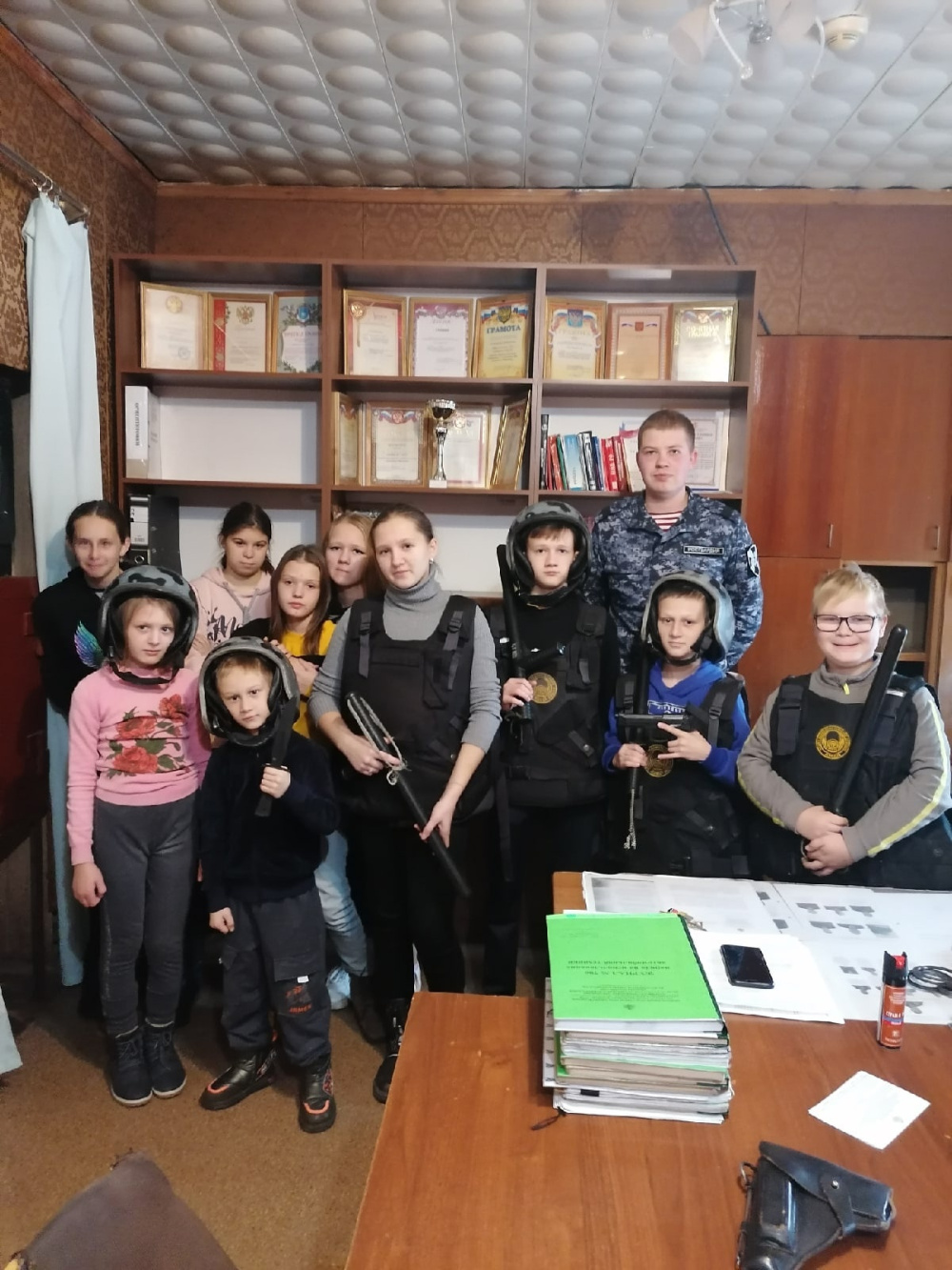 Очень интересную экскурсию провел для ребят командир отделения Немытов Д. А. Он рассказал какие задачи выполняет Росгвардия, чем отличается от полиции, какие полномочия имеют сотрудники, показал экипировку и спецсредства. Мальчишки с интересом рассматривали бронежелеты, примеряли шлема. Также Даниил Александрович рассказал, кого берут на службу в такую структуру, и какое требуется образование. А в конце экскурсии ребята получили возможность посидеть за рулём настоящей патрульной машины, включить проблесковые маячки и спецсигналы.