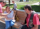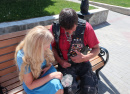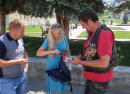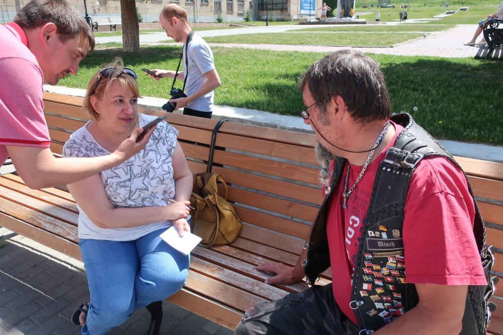 Меня с Удо познакомили коллеги-депутаты Алексей Воробьёв и Александр Решетов. Пока немецкие гости ждали результата ремонта, ребята предложили встретиться с Удо на местном Арбате, показать ему наши местные достопримечательности. При помощи гугл-переводчика вместе с заместителем главного редактора "Авангарда" Вероникой Саблиной они пытались сделать интервью с байкером. Беседа выглядела прикольно, и Удо первый раз интервьюировался таким образом.