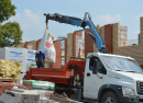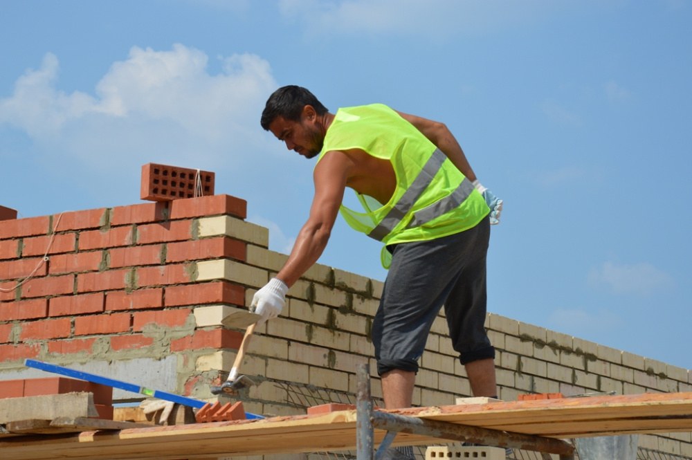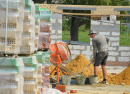 На стройке очень оживленно. Одни воздвигают стены и облицовывают здание, другие мешают раствор, носят стройматериалы и кирпичи для укладчиков. Работа кипит.