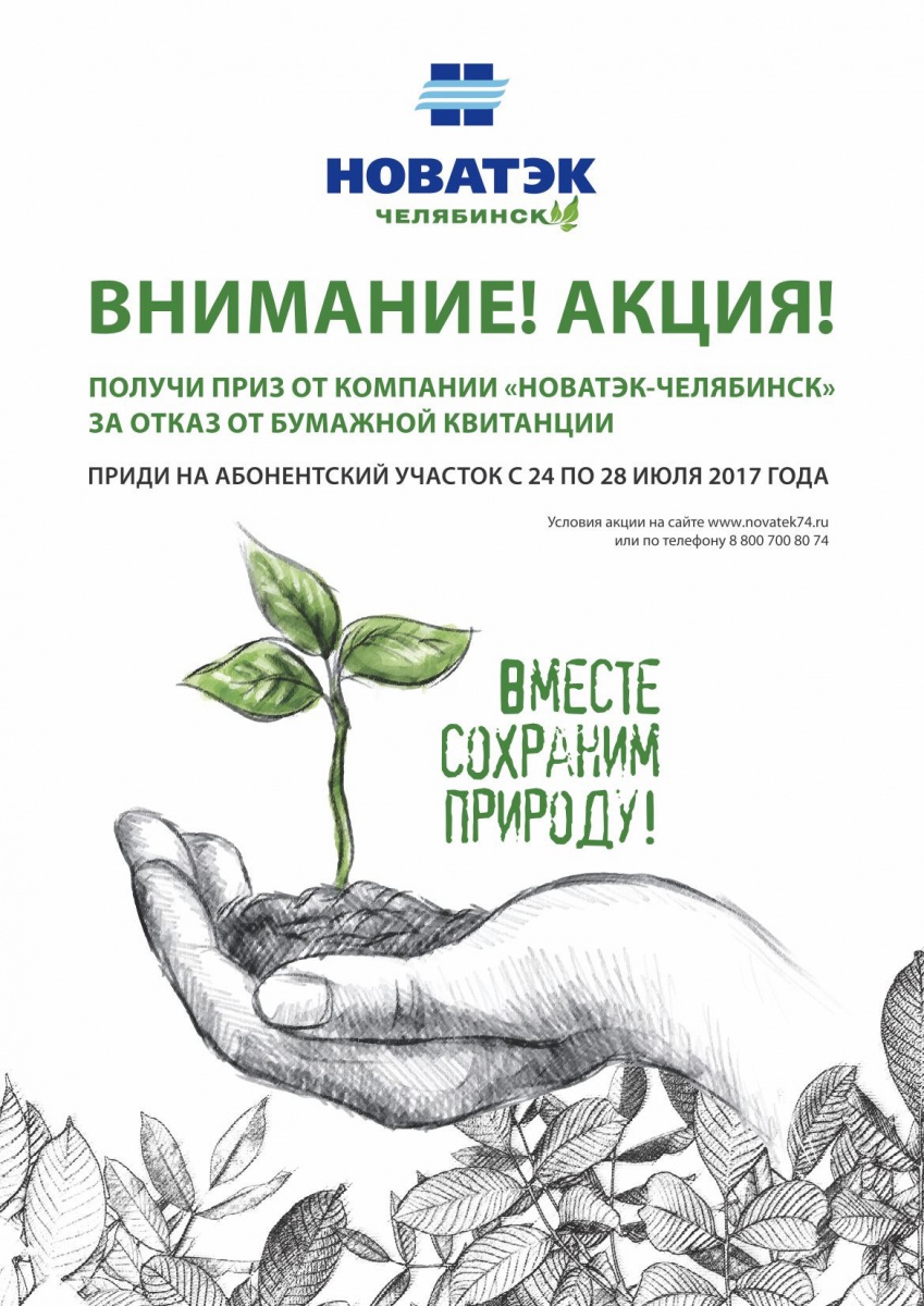 С 24 по 28 июля «НОВАТЭК-Челябинск» в рамках «Дня абонента» проводит акцию – «Откажись от бумажной квитанции за газ!».
