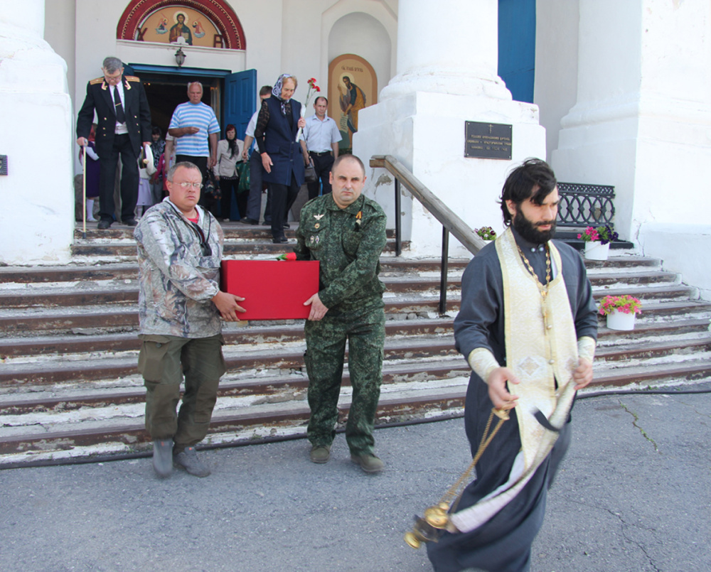 В храме Катав-Ивановска прошла панихида по всем погибшим в той войне, в том числе и по Василию Волкову. Его прах и прах его однополчанина захоронили на кладбище в Запрудовке.
