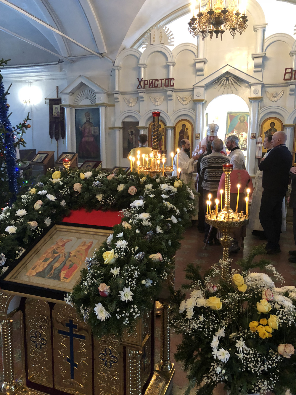 С проповедью к прихожанам обратился Дионисий Абрамов. Затем было причастие.