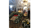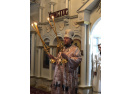 Божественная литургия, как всегда, проходила торжественно и красиво. Каждый раз обращаешь внимание на то, в каких облачениях выходят к пастве священники. Ведь цветовая гамма отражает церковно-литургическую символику, а каждый цвет - духовное значение события, в честь которого совершается богослужение. В двунадесятый праздник Собора Предтечи служители православия были в белых одеждах, символизирующих свет, воссиявший от гроба Христа при его воскресении. Особенно искусно изготовлено шёлковое облачение владыки Викентия, на котором величественно смотрятся крест и панагия.