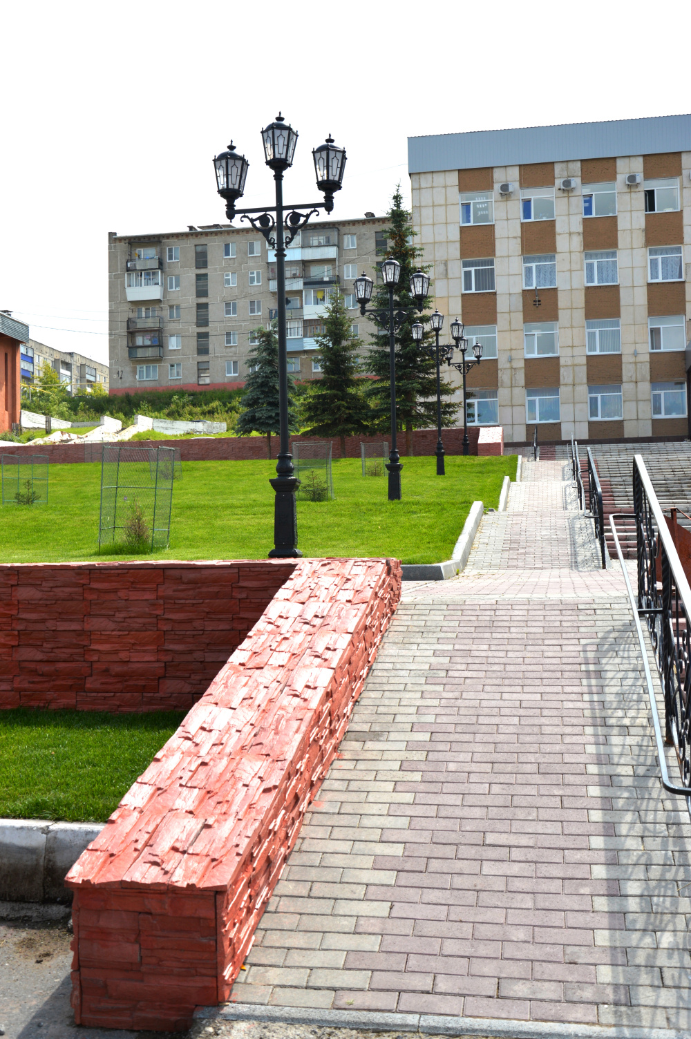 Лестничный каскад, примыкающий к Центральной площади Катав-Ивановска, полностью преобразится уже к этой осени. Терракотовый валаамский камень в сочетании с зелеными газонами — цветовое решение всего лестничного комплекса от администрации района до досугового центра «Октябрь».