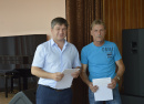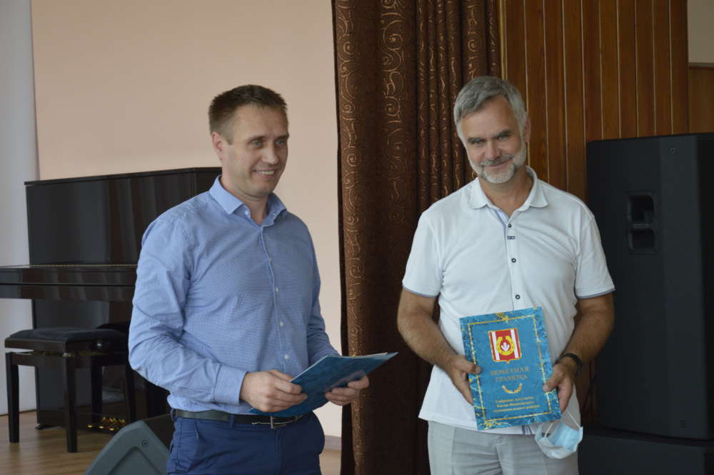 В этот жаркий августовский день в актовом зале предприятия собралась его малая часть. Несмотря на это, обстановка была абсолютно легкой и приятной. Каждый работник завода излучал спокойствие и доброту. После вступительного слова директора производства, Николай Рудаков наградил почетными грамотами главы района за многолетний и добросовестный труд, высокие профессиональные достижения и в связи с Юбилеем предприятия— Полухину Ксению, мастера малярно-гальванического участка производства №2, Юрия Сырцева, слесаря механосборочных работ производства №3. Благодарственное письмо вручил Ивану Хатипову, оператору координато-пробивного и гибочного оборудования производства №2.
