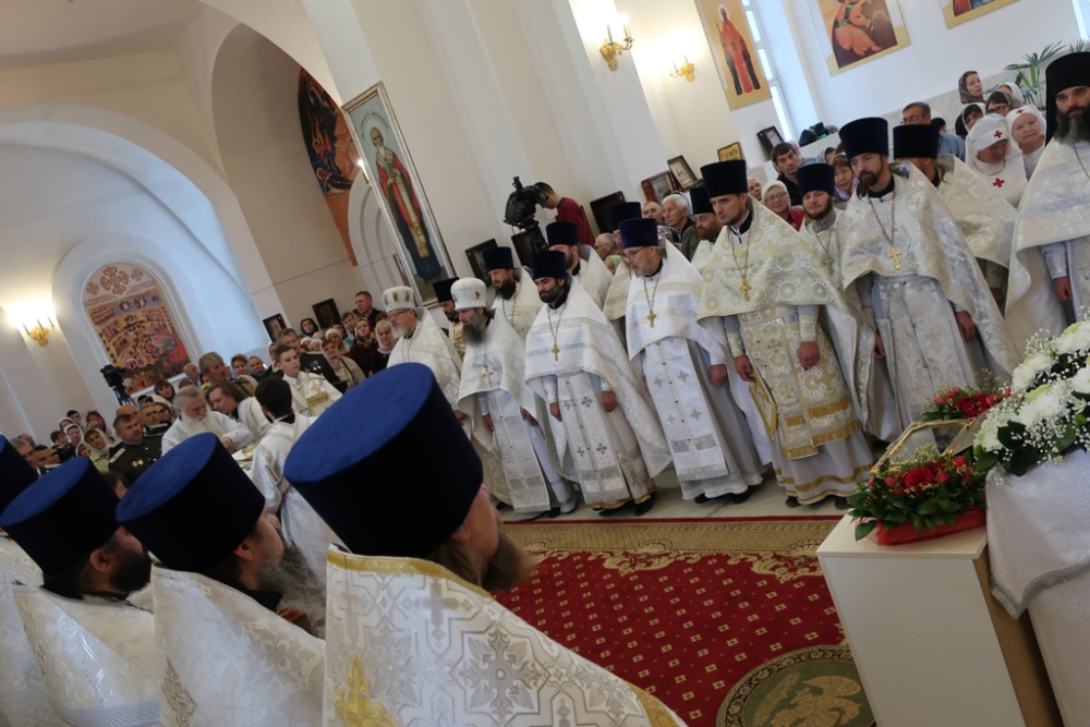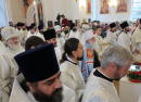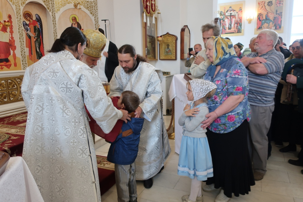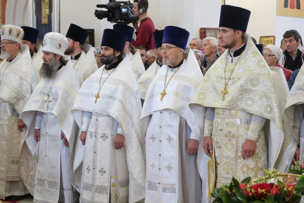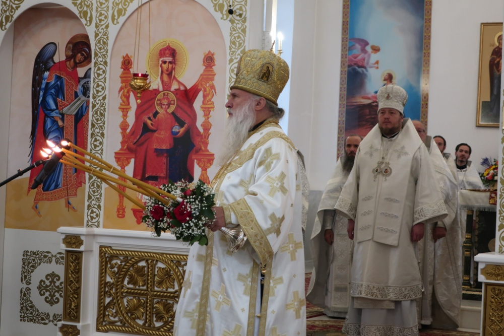 Богослужение проходило очень красиво, православное священство было облачено в кристально белые, расшитые золотой и серебряной нитями, одежды. На светлом, тёплом фоне зала кафедрального собора, при ярком освещении, всё смотрелось очень празднично, величаво. Чисто звучали песнопения сводного хора Златоустовской Епархии. Прихожане искренне молились почти два часа…