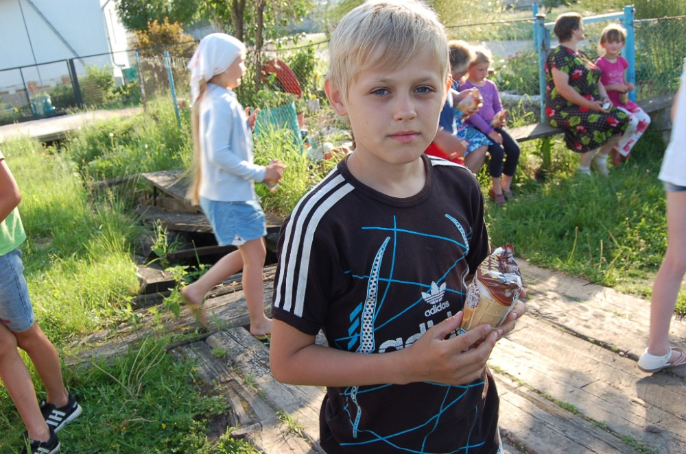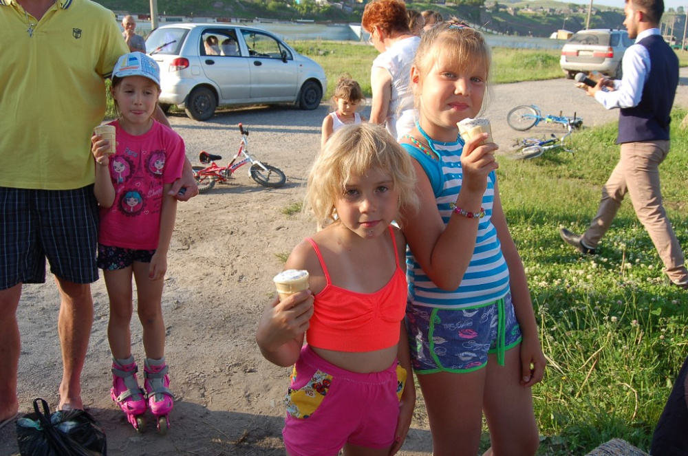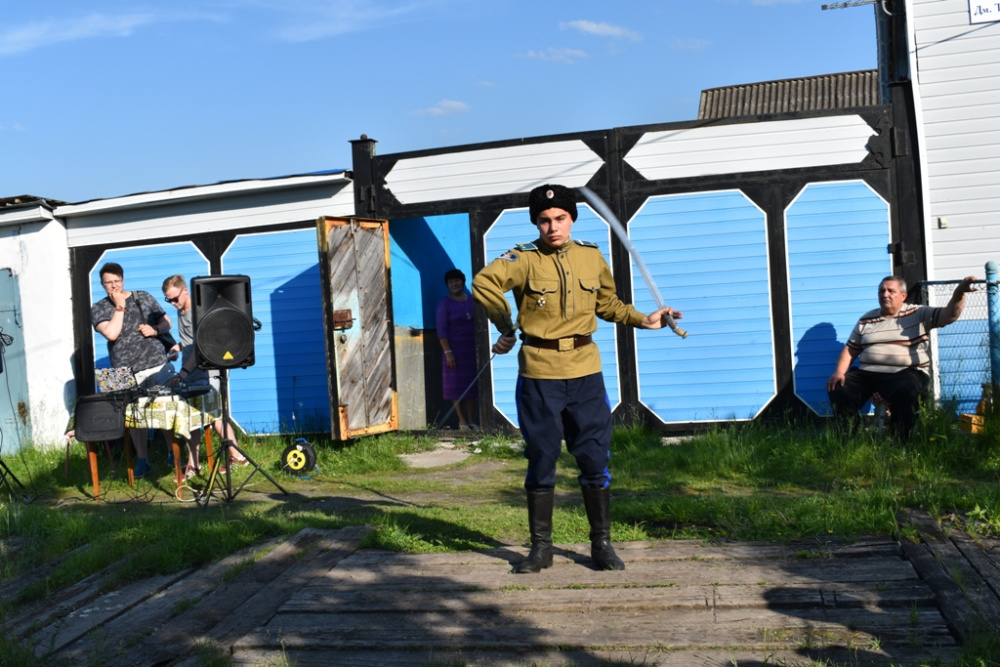 Под аплодисменты поздравили жителей-юбиляров: с 60-летием - Наталью Борисовну Шестакову, Надежду Петровну Некрутову, Наталью Петровну Маркелову, с 35-летием - Евгения Юрьевича Ивкина. А семью Сологуб - Игоря Вячеславовича и Екатерину Александровну - с пополнением, у них родился сын Илья. «Все мы друг друга знаем и желаем всем здоровья и счастья!» - говорят горожане. Много добрых слов сказала в адрес своих избирателей Галина Георгиевна, заслуженным людям вручила подарки – от себя и от Местного отделения партии «Единая Россия». Казаки - десятник Александр Ласточкин и кадет из Юрюзани Виктор Куркин не только порадовали зрителей показательным выступлением - фланкировкой шашками, но и к столу привезли тортики. Я подумала, что неплохо бы детям, если родители разрешат, полакомиться мороженым. И была права: ни у кого из них на эту приятную сладость аллергии нет, так что охлаждающая сладость была очень кстати.