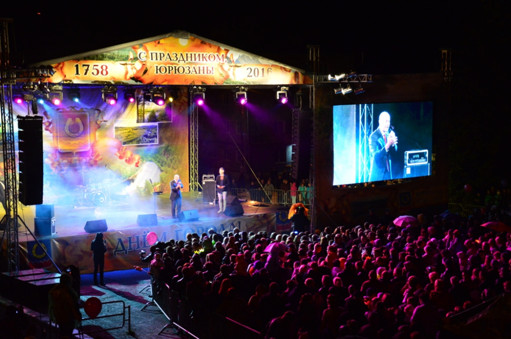 Все ждали вечернюю программу – и она стала настоящим сюрпризом для юрюзанцев. Надо сказать, что глава района Евгений Киршин принял решение подарить Юрюзани в День города настоящий праздник, на большой профессиональной сцене, с участием звёзд Уральского федерального округа и артиста российской эстрады, композитора, певца Ромы Жукова.