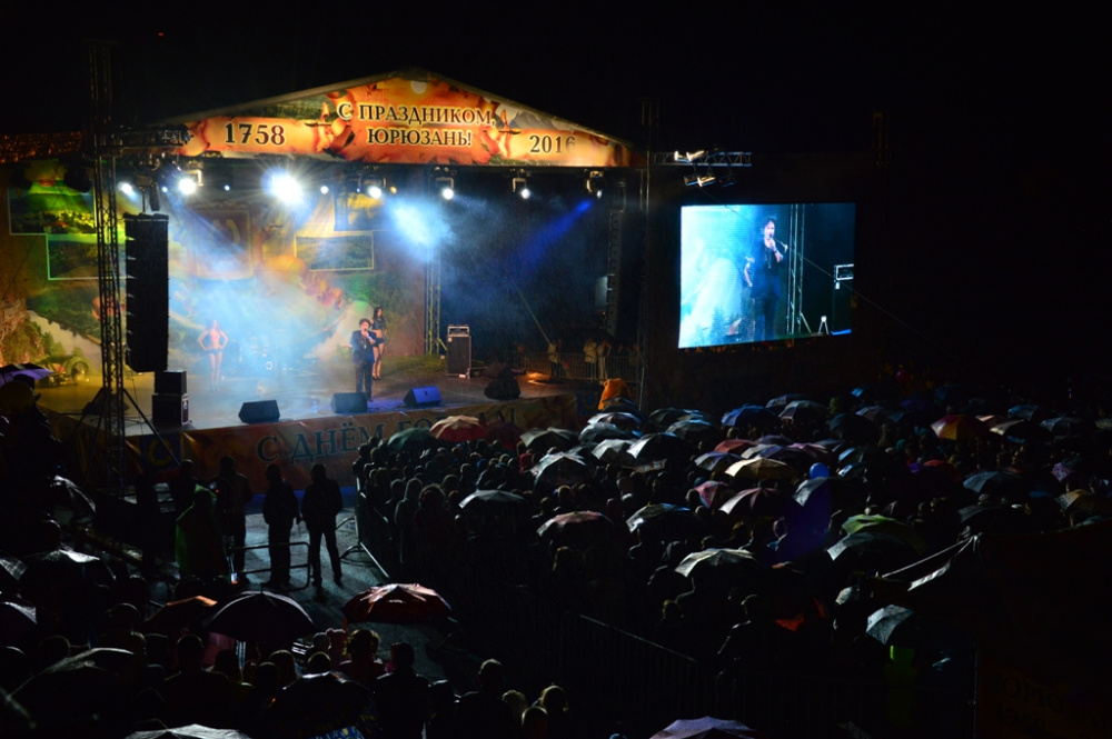 Рома Жуков прибыл днём, расположился в гостинице «Синегорье» и с удовольствием пообщался с местным населением, посмотрел город. «Здесь очень красиво, чистый, божественный воздух, - поделился своими впечатлениями певец. – Поздравляю Юрюзань с днём рождения!» Вечером он выступил на пять с плюсом, дождь не стал помехой, наоборот, толпа разукрасилась яркими зонтами – и это была неповторимая картинка начала осени. Молодёжь принимала на «ура» танцевальное шоу группы «Неприкасаемые», вокальный проект «Два человека», коллективы «Изюм» и «Universe».