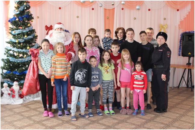 В конце праздника полицейские с детьми встали в хоровод и спели новогоднюю песенку «В лесу родилась елочка», подарили детям сладкие подарки и пожелали им всего наилучшего в новом году, а также напомнили о необходимости соблюдать правила безопасного поведения дома и на улице.
